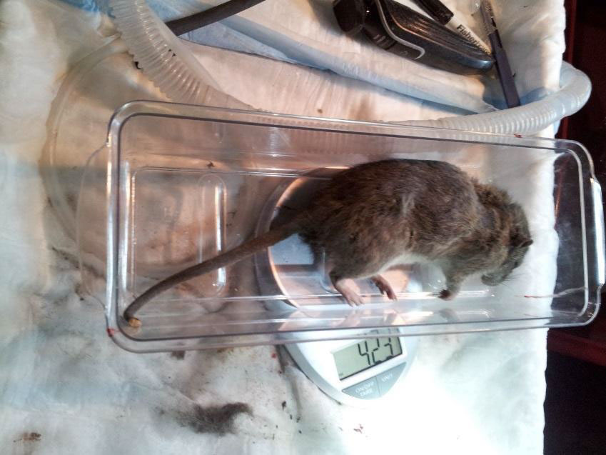 - Place a clean container on the scale, tare it to zero, then add the rodent;
